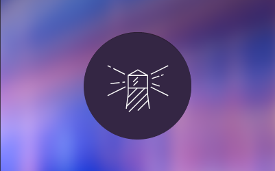 Three layered map tiles inside a circle on a multicolored background